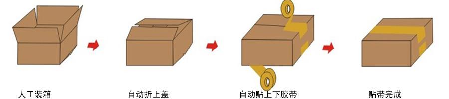 ◆ 本系列是以單機機型上下“一”字型貼膠帶,多規格化全自動封箱包裝作業